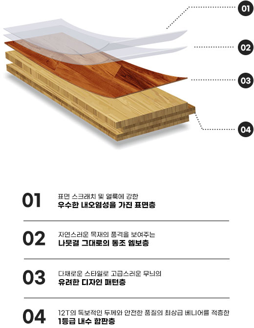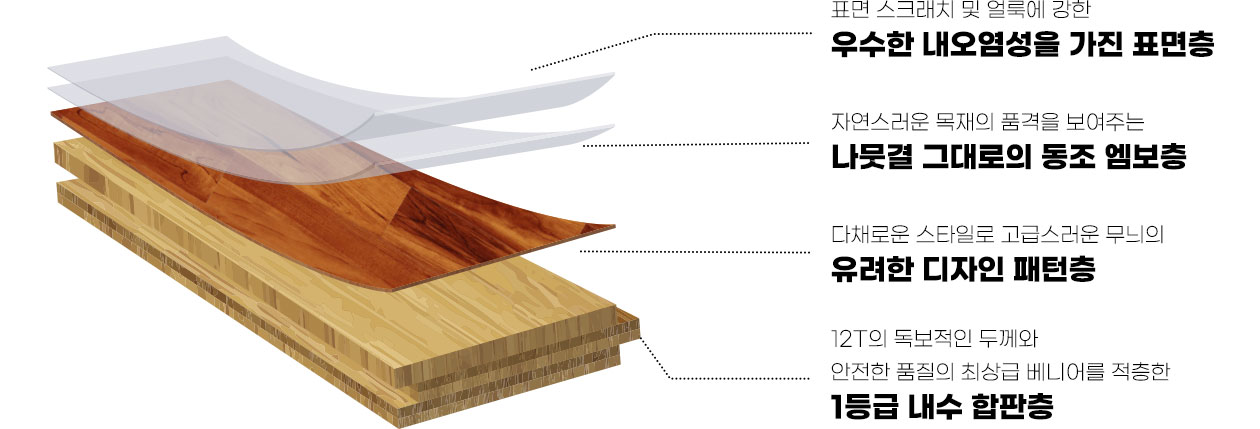 마루의 팽칭 및 수축 문제를 완벽하게 방지합니다.